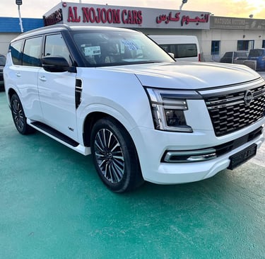 "Export Nissan Patrol Platinum 2025 from Dubai, UAE to Africa, Algeria, Turkmenistan, India, China, and Gulf countries. Al Nojoom Cars offers premium car export services worldwide. Visit us at Ducamz, Ras Al Khor, Showroom 148."